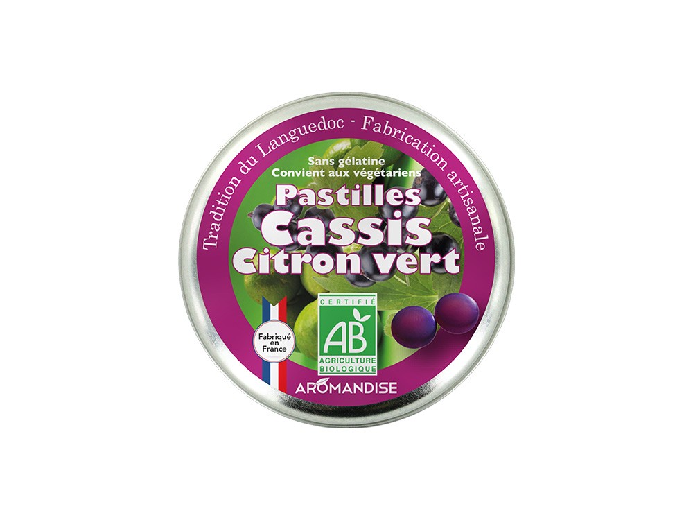 Des pastilles au cassis et au citron vert, cela donne la saveur fruit rouge très douce du cassis relevée par un zeste de citron vert pour la touche exotique. La gamme est fabriquée artisanalement selon les traditions et le savoir-faire du Languedoc. Ces bonbons gourmands bio sont sans gélatine. ... Plus d'infosDes pastilles au cassis et au citron vert, cela donne la saveur fruit rouge très douce du cassis relevée par un zeste de citron vert pour la touche exotique. La gamme est fabriquée artisanalement selon les traditions et le savoir-faire du Languedoc. Ces bonbons gourmands bio sont sans gélatine.